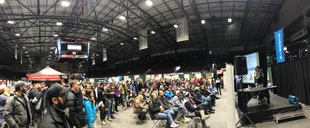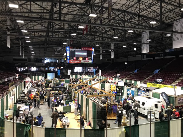 Was a great day at the inaugural Canadian Ice Fishing Expo. Trevor and I made the two hour trek from Delhi, Ontario to Barrie, Ontario to spend the day with good friends Gord Trask and his son Jackson. When we arrived at the Barrie Molson Centre the admission line up was long! A good sign for the first day of a new show.