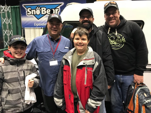 After drooling over the great ice fishing deals we headed over to the Sno Bear booth. If ice anglers have not seen these machines you need to check them out! Breathtaking! While we were there we took a few minutes to visit with Bob Izumi and grab an autograph for Jackson. Always great seeing Bob and talking fishing with friends. He is Canada’s most well known angler for a reason!